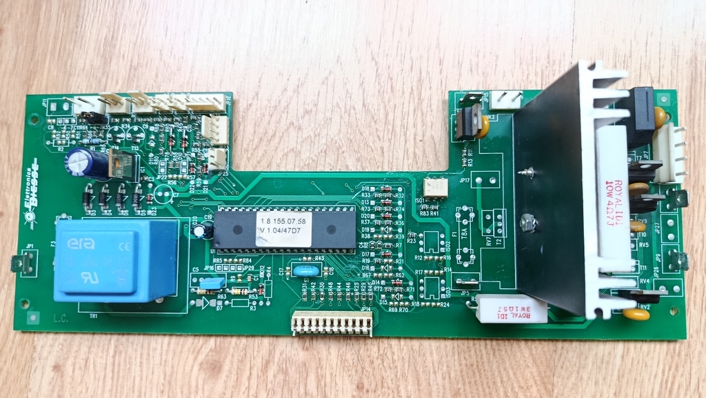 Плата знята з робочої кавомашини, у хорошому візуальному та технічному стані, без слідів ремонту, підгорілих доріжок чи пошкоджених елементів.